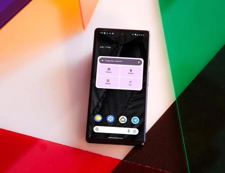 El widget de Gemini se presenta con cinco botones: el primero es el de 'Preguntar a Gemini', que invoca directamente el cajetín de texto y le acompañan otros cuatro para la multimodalidad: el primero te lleva a la cámara, el segundo a los archivos, con el tercero vas a la galería de fotos y vídeos y el último invoca al asistente 'Gemini Live'. Una nueva forma de invocar sus principales funciones desde el inicio.