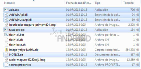 Descargar el archivo de la imagen de fábrica que corresponda a nuestro Nexus de la web de desarrolladores de Google.